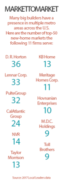 In Phoenix, the country’s fourth-largest housing market in 2016, Taylor Morrison division president Brad Schoenberg similarly says the company’s scale in the market—aside from it also being the firm’s hometown—gives it a legitimacy with both buyers and partners that’s harder for small builders to establish.