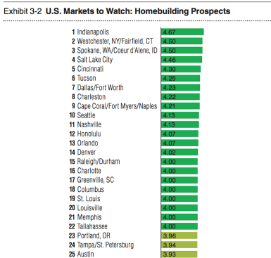 The report’s specific “Markets to Watch” section is a perennial favorite, with rankings in both “Overall Real Estate” and “Homebuilding Prospects.” While major markets have tended to draw the most attention due to strong job growth, there’s debate as to whether that momentum has played out as secondary markets start to show a glimmer of promise.