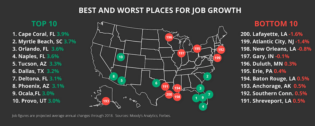 Here, Forbes staffer Kurt Badenhausen spotlights the title’s annual “Best Places for Businesses and Careers” which looks at a cross-section of factors for both corporate location and domestic talent migration to rank 401 U.S. metro areas.