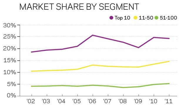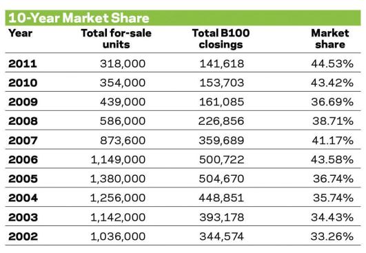 In 2011, BUILDER 100 companies captured the highest market share in a decade.