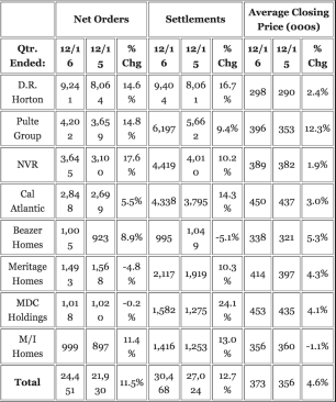 Have a look, for example at Calculated Risk contributor Thomas Lawler‘s roll-up of how eight of the 22 or 23 public companies operating as home builders fared in their operational performance for the quarter ended Dec. 31, 2016. Net order growth across the peer group was 11.5%, but look at how wildly varied some performances were vs. others.