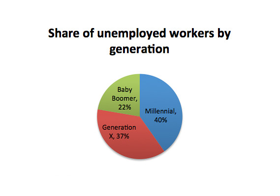 MarketWatch’s Quentin Fottrell taps an analysis of U.S. Census data by the Georgetown University Center on Education and the Workforce that reveals specifically that some 40% of unemployed workers are millennials.