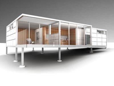 Homes can be as small as clients want them—a pool house, for example—or as large. Each features a welded steel frame that absorbs the entire structural load of the house, but also eliminates the need for any interior or exterior walls and permits window location anywhere on the floor plan.