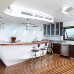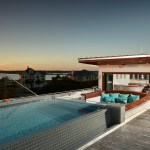 Fitting for a dwelling located near the site of a historic shipwreck, the house contains many nautical references, including a boat-shaped bar on the roof and the swimming pool’s glass walls with surrounding ipe decks and cable railings. The lumber from the wreck was salvaged, mounted on poles, and is displayed at the entrance to the driveway as a reminder of what happened here more than 100 years ago, says Batson.