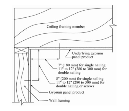 Fasteners placed tight into wall and ceiling corners may cause cracking in the corner. Instead, hold fasteners back to allow the corners to float.