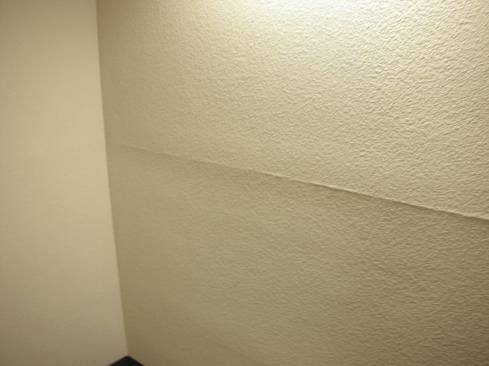 The image below shows ridging of a horizontal joint at mid-wall height. This could be caused by lumber shrinkage due to the use of wet lumber, or it could be an example of ridging caused by butting a ripped edge to a tapered edge. Either condition is preventable, either by keeping the lumber dry or by making sure to butt tapered edges together.