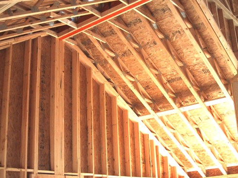 It’s important to have the major structural loads in place before drywall is applied. For example, roof shingles should be installed, or at least evenly loaded onto the roof, before applying wallboard. Large heavy items such as bathtubs should be in place before drywall is applied. If there’s heating and cooling equipment installed in the attic, that should also be in place before drywall is finished.