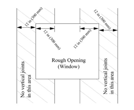 Below is a good example of a sheet of wallboard placed so that it spans a carrying post. The joint will also be located well away from the corners of the window rough opening (see discussion below).