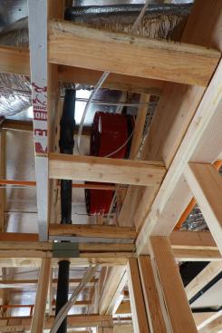 Note how the gypsum panel spans over the load pathways.