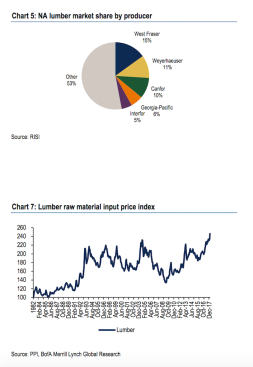For instance, here’s how the Bank of America Merrill Lynch analysis looks at the framing lumber component, estimated at an average of $15,421 per new home.