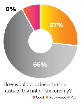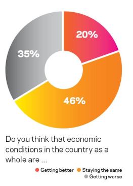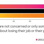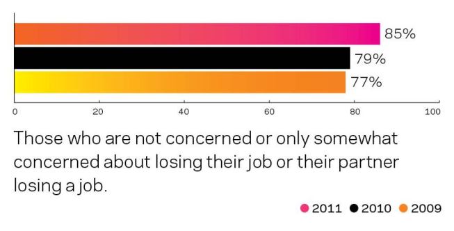 And, while the survey respondents said they are gloomy about the economy, 85 percent said they were not concerned or only somewhat concerned about losing their job or their partner’s job.