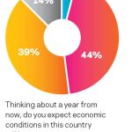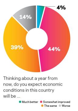 The participants were a gloomier bunch this year, less optimistic than last, though probably no more so than the general population. Even before the U.S. debt downgrade sent stock markets on a neck-jerking roller coaster ride in August, more than half the American LIVES survey respondents said they expect that conditions a year down the road would be worse or the same, with 44 percent expecting it to be somewhat improved. Just 4 percent said things would be better.