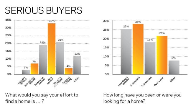 But here’s the sunny side of the survey results. Despite all their worries about economic conditions, these people were still out shopping for a new home. Plus, half of them said they were somewhat or very serious about buying one. (And remember they answered this questionnaire AFTER leaving the model home, discounting the idea that they would give that answer to gain entry to the houses.)