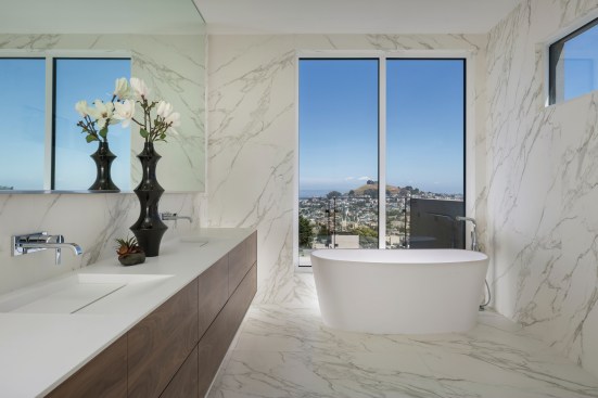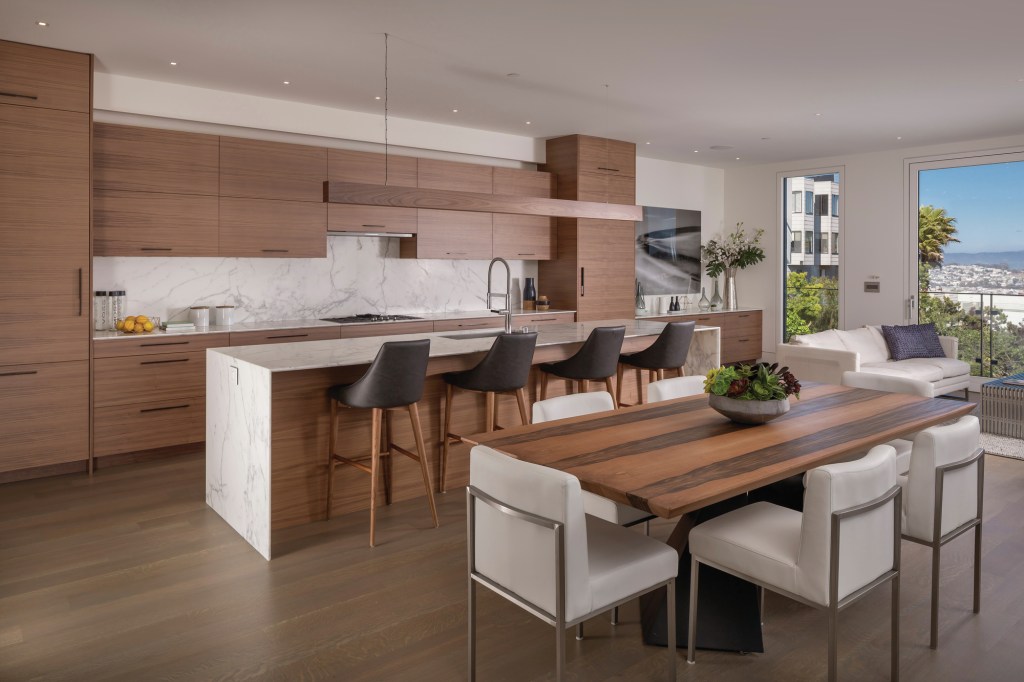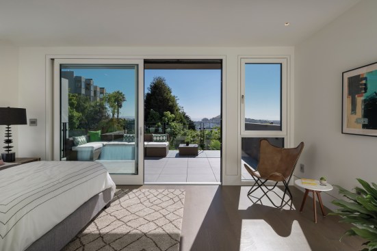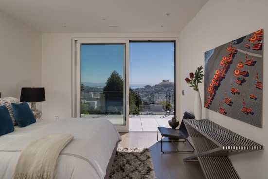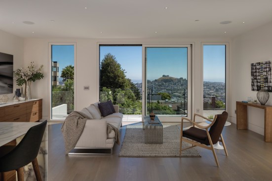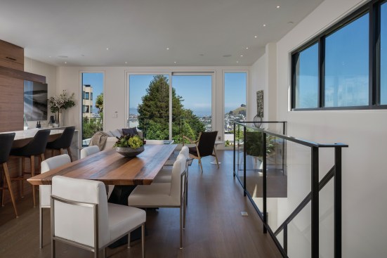 Designed by local firm Hood Thomas Architects, the four-story contemporary house features an open plan and plentiful natural light. Even in relatively temperate San Francisco, all the glass is triple-paned for insulating purposes; it’s part of the home’s Passive House design, a standard developed in Germany. Passive homes are tightly sealed, and their energy use is minimized by a heat recovery system that captures and reuses heat. “If your property is air-sealed, then you decide where and when ventilation happens—you have control over it and can harvest energy from it,” says Ewen Utting, developer and founder of San Francisco-based ENU Construction, the project’s builder.