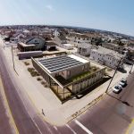 - Fiber-composite materials that have been repurposed from the boat building industry, resulting in a building armored against extreme weather