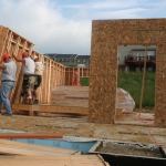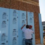 In the end, the crew constructed 2×8 walls with staggered 2x4s, which provide a thermal break, with blown fiberglass insulation and 2 inches of foam on the exterior. Choosing this modified traditional system also ensured that panelization could still be achieved, an essential component for ensuring acceptance and replication.