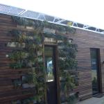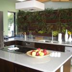 The most obvious natural touches are a series of “Life Wells,” herbs and plants built into the wall of the kitchen and bathroom, and into the rear exterior wall; an overhead skylight nourishes plants growing out of pockets in the adjoining wall of the kitchen and bath.