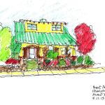 The sketches and blog topics Harmon selects are spontaneously based on what catches the architect’s eye, but they relate to current building practices and approaches. The first entry looks back at a presidential home that was designed using time-tested passive cooling and heating techniques. Another post in response to Hurricane Sandy looks at century-old waterfront houses that have survived multiple hurricanes thanks to good siting and storm-resistant design. “I don’t go out looking for something,” Harmon explains. “I notice what’s wonderful or fulfilling or instructive in the things that are everywhere around us.”