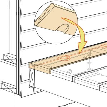 The goal is to divert runoff over the top of the ledger board instead of allowing water to get behind it. Like all flashing details, it requires a layered approach designed to shed water away from the home’s structural elements.