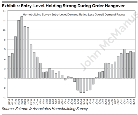 Still, a full industry-wide plunge into serving an as-yet, largely unmet need to attract aspirational, early-career households on to the ownership dance floor can not come a moment too soon. From the looks of things, that all-out immersion may be forthcoming, but not until 2019. From The Z Report’s latest series of analyses (for a free trial, link here), Zelman & Associates notes: