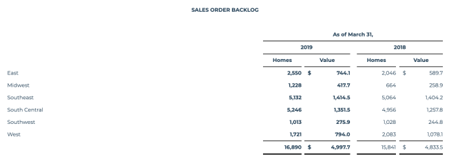 “Our continued strategic focus is to consolidate market share while growing our revenues and profits, generating strong annual cash flows and returns and maintaining a flexible financial position. With 32,100 homes in inventory at the end of March and 316,400 lots owned and controlled, we are well-positioned for the remainder of fiscal 2019 and future years.”