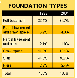 This year, we asked the NAHB Research Center to compile some key data from its annual Builder Practices Survey–specifically for use in BUILDER magazine. We selected some of the results, broken down by construction category from the ground up, that we feel offer a snapshot of changes taking place in the products and techniques of U.S. home building.