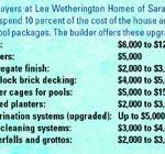 Sarasota, Fla.-based Lee Wetherington Homes had a less satisfying experience with its pool contractor. After the contractor went bankrupt in 1999, the builder launched its own division, LeeSure Water Pools, and since then things have been looking up. The number of pools it builds annually has increased from 80 to 220, with pool revenues at $15 million. “If you’re going to bring it in-house, you should do at least 100 pools a year,” says president Lee Wetherington, who expects his company to close 340 homes this year. The pool division includes six people—three in the field, one in purchasing, and two in sales; mechanicals are subcontracted. “Pool companies aren’t professionally run in our area, so it took getting the trades to understand work orders,” Wetherington says. A pool is included in the price of the house (only 1 percent of customers opt out), and buyers spend 40 percent more on upgrades. “A total pool package is usually 10 percent of the cost of the house and lot,” he says. “We try to run it on a 12 [percent] to 14 percent net profit, the same profit margin as on homes.” However, upgrades are marked up 50 percent to 100 percent, compared to the 30 percent to 35 percent for house upgrades.