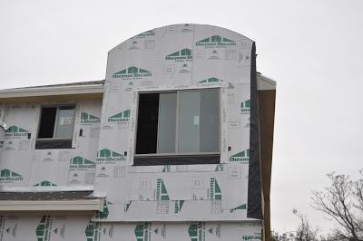 Have you ever seen a house that was framed with Thermoply sheathing? Here’s a “custom” home I took a picture of a few weeks ago that used this (seems like cardboard to me) sheathing.