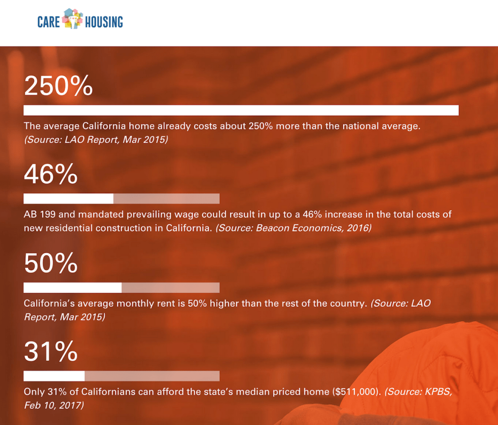 Already, the Business Council of San Joaquin County says AB 199 would increase the cost of a 1,500 square foot single family house in the Central Valley by $75,000; and industry experts estimate that AB 199 could add approximately $90,000 to the cost of building a 2,000-square- foot house in San Diego County.