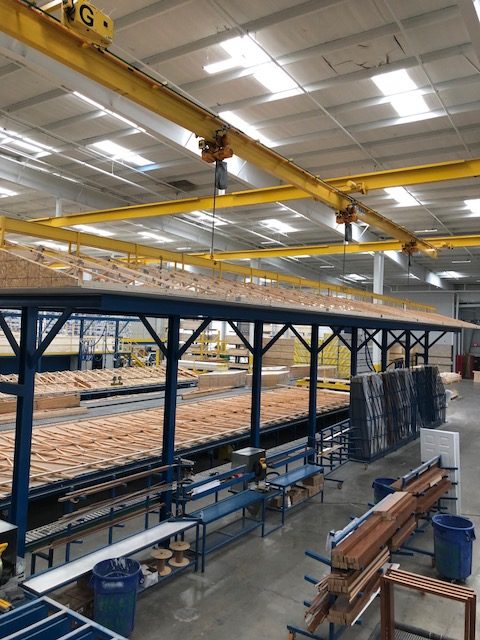 All the while, as humans and machines hammer 2,867 2-1/4″ coil nails, 296 3″ 10D nails, 12 2″ X 4″ 20GA floor plat gang nails, and 6,548 staples of various sorts to lock each piece into place, in-house quality assurance teams and third-party inspectors check each area before the roof assembly team moves the structure to its next stage.