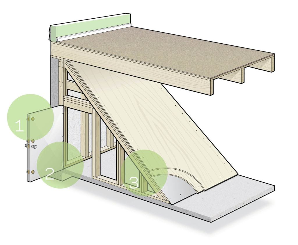 3. Construction – Use 2×4 framing; double-up each stud and sheath the wall with two layers of 3/4-inch plywood over a layer of 14-gauge steel sheathing.
