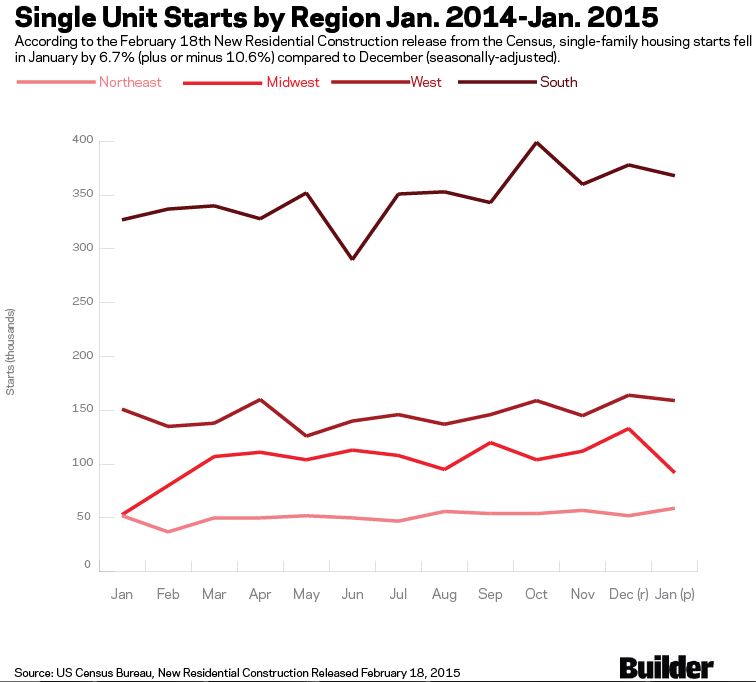 Despite this weakness, Metrostudy sees signs that builders are gearing up for more production in 2015, at least in certain markets. An excellent leading indicator for housing starts is the number of lots reaching development (ready for the builder to start building). Our in-field research shows that lot development has doubled in the last two to three years in many markets. In markets like Austin, SLC, Tampa, and others, lot development is running faster than starts. That strongly suggests increased housing starts in those areas.