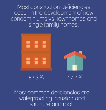 A majority of construction deficiencies occur in new condominium developments compared to townhomes and single-family homes, according to a new study by Community Associations Institute (CAI), a nonprofit dedicated to community association education, governance, and management.