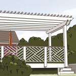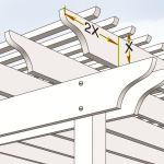 As a general rule, we size the joists as we would for low-slope roof rafters of a similar length. For a small arbor with 2×8 cross beams, we use 2×6 joists. If the cross beams are 2x10s or 2x12s, we use 2x8s or 2x10s for joists. Deck design and spans affect column counts and spacing. If necessary, we’ll upsize the beams to increase the span