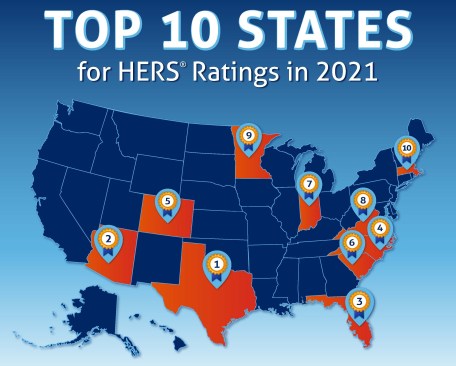 In 2021, there were 313,153 homes in the United States that were issued a HERS Index Score. The Residential Energy Services Network (RESNET) recently delved into that number to identify the top 10 states with the highest number of new single-family and duplex homes HERS rated last year.