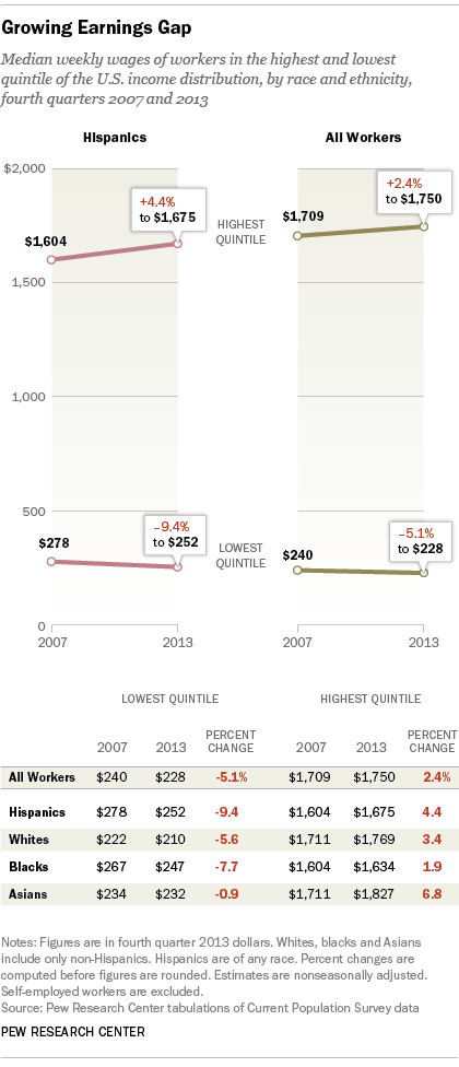Pew Research’s Rakesh Kochhar comments on new data that shows that Hispanics are feeling the impact more than other groups of the widening pay gap between high-wage and low-wage workers.