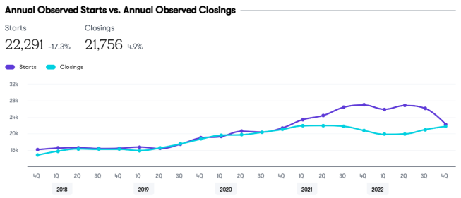 Austin was center stage nationally as the housing market rocketed in 2020 and 2021 and remained there as one of the markets that declined the most sharply in 2022. While employment growth remains strong, negative sentiment and affordability concerns have weighed heavily on the new-home market since spring 2022.