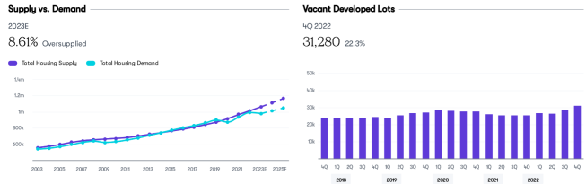 The market got overheated with speculative buying and building, with uncertainty regarding where the market goes from here. Other challenges include traffic buildup with limited public transportation, significant multifamily development, and mortgage payments much higher than pre-pandemic levels.