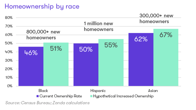 We already mentioned that a modest boost in the homeownership rate among Black, Asian, and Hispanic families could drive demand for over 2 million housing units. Why do we care?