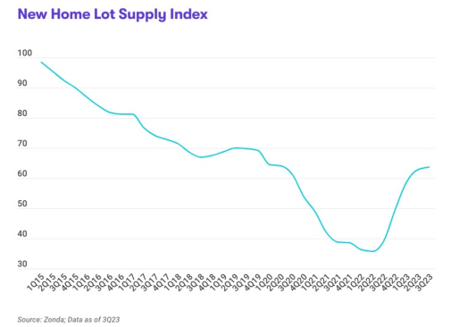 Zonda’s New Home Lot Supply Index showed 62.4% more lots were available in the third quarter compared with the same quarter a year ago. The index is back to mid-to-late 2020 levels, before the pandemic-related feeding frenzy saw vacant lots snapped up as soon as they were available.