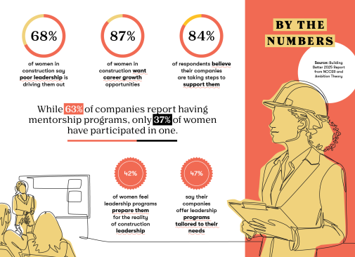 The data comes from the “Building Better 2025: Rethinking Leadership in Construction” report from the Ambition Center for Construction Education and Research. It surveyed 775 women.