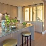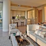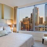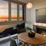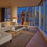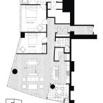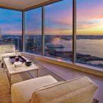 Situated on a mid-block site measuring just over one-third of an acre, the 440-foot-tall residence is partly flanked by landmark buildings, but the developer secured view easements to preserve panoramas on the other side. Floor plans feature no exterior columns thanks to an innovative “shear core” design that allows a glass curtain wall to fully wrap the tower. Each floor contains only three to five apartments which, in combination with a unique floor plate, gives nearly every home a view of the water in the distance. Each residence features a solarium with a folding window system. This alternative to the typical protruding deck allows year-round connections to the outdoors while preserving the clean lines of the building’s exterior architecture.