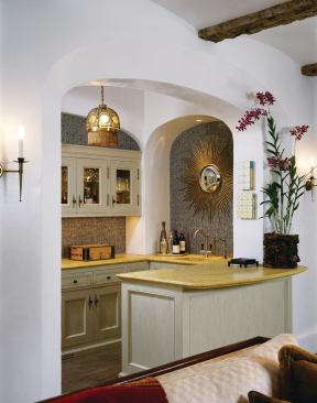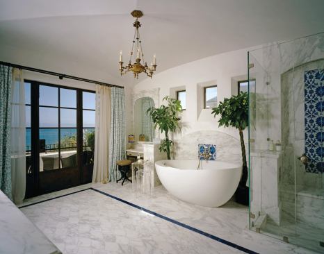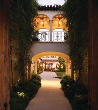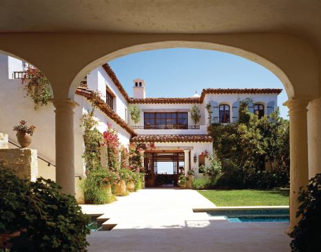 Romance is not dead. At least not in and around this beguiling beachfront villa in Malibu, Calif., the renowned playground of the rich and famous. The architecture is inspired, but it’s the impeccable attention to detail that truly makes it special. Features such as rusticated wood ceiling beams, natural stone walls, filigreed iron railings, and climbing bougainvillea give the home a timeless presence. The arched colonnades and portals that appear at every turn form intimate frames for those details. As a result, every room, courtyard, and balcony becomes a point of discovery.