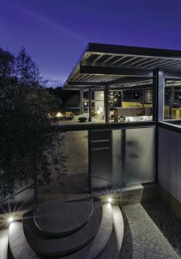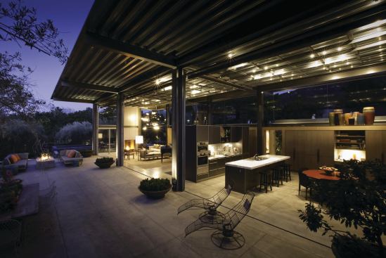 Architects often define great architecture as the creation of light-filled spaces that are warm, comfortable, and inviting. Although those goals may seem at odds with the use of materials such as concrete, steel, and garage-style glass doors, the work of Barton Myers proves otherwise. This residence is a prime example of Myers’ style.