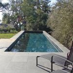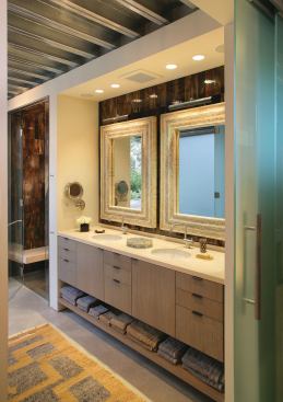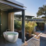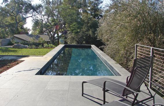 Measuring 4,500 square feet, the home consists of two wings. Its public wing contains living room, dining room, and kitchen areas that open up to a large outdoor dining and lounging space, while the private side, with bedrooms, baths, and library, has its own outdoor areas. A 50-foot lap pool allows the homeowners and their guests to swim in style.