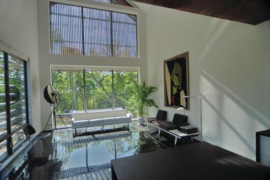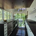But the spare, streamlined kitchen is also easy to love from a purely aesthetic standpoint, offering clear evidence of Studio 804’s design finesse. A dropped ceiling of FSC-certified Brazilian hardwood brings warmth and a more intimate scale to the casual cooking and eating area. And the designers opted for two undercounter refrigerators in lieu of a traditional tall standing fridge to preserve the space’s lean lines and incredible sense of openness.
