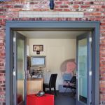 The husband, who uses a wheelchair, goes to work by going outside, up the sidewalk, and into the rear door. “He wanted to commute, and that’s his commute,” Engle says. The concrete floors have a smooth terrazzo finish that’s easy to maneuver on, and the hydronically heated surface makes the wheels warm to the touch.