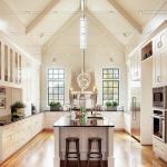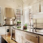 A peaked ceiling and tall windows provide the drama and grandeur that’s needed for important gatherings. But the kitchen also serves as a gathering place for the chancellor’s family; it had to feel cozy, too. Good lighting—a challenge in itself for any room with a soaring ceiling—went a long way. MR-16 LED spots on cables that are strung in line with the ceiling beams provide general lighting, while a glass globe pendant illuminates the island. For task lighting, there’s ample under-cabinet illumination, and for ambient light, the cabinets are lit from within. That sounds like a lot of switches to remember, but to simplify matters for the many caterers and chefs who come to work parties, switches have handy setting labels like “Arrival,” “Entertaining,” and “Dinner.”