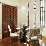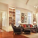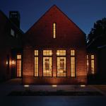 Private funds were raised to build the residence, which had to be both up-to-date and timeless. “The kitchen needed to be one for the ages,” recalls interior designer Judy Pickett. “It had to look as good 20 years from now as it does today.” Pickett opted for off-white ceilings and glass-fronted cabinetry, stainless steel appliances, oak floors (like most of the wood used to build the house, it comes from North Carolina State’s research forest), and black countertops. Pickett was particular about speccing black granite—quieter than many other varieties, it’s “far less likely to look trendy five years from now.” Natural light streams into the kitchen from all four sides, and the shiny black work surfaces function like mirrors, bouncing light all over the room.