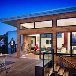 The factory-built Huf House features post-and-beam architectural design and energy efficient technology.